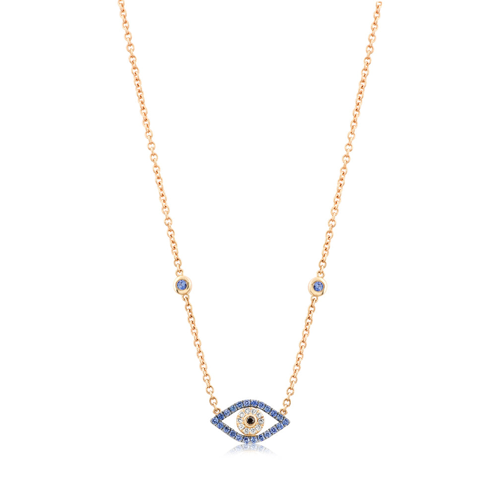 Evil Eye Diamond & Sapphire Yellow Gold Necklace