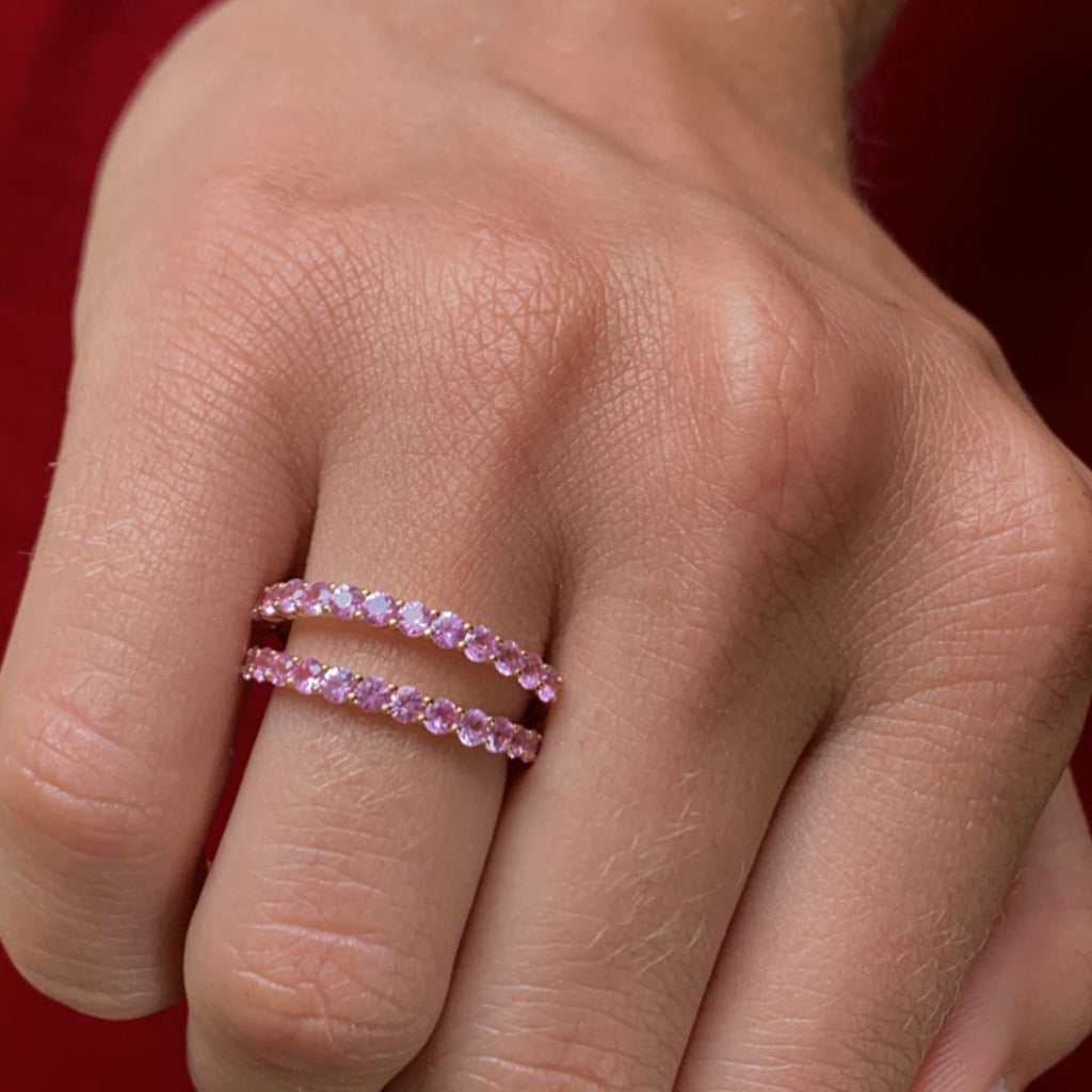 Pink Sapphire Stone of Love Eternity Ring 18k Yellow Gold